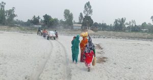 উলিপুর (কুড়িগ্রাম) প্রতিনিধি :কুড়িগ্রামের উলিপুরে পানির অভাবে খরস্রোতা তিস্তা নদী এখন ধু-ধু বালু চর। বিস্তীর্ণ এলাকায় জেগে উঠেছে চর। ব্যাহত হচ্ছে চাষাবাদ। বিপাকে পড়েছেন কৃষক। স্বস্তিতে নেই জেলেরাও। এদিকে তিস্তার পানি শুন্যতায় দুই তীরের মানুষ পায়ে হেঁটেই তিস্তা পার হচ্ছেন। এমন পরিস্থিতিতে চরম দুর্দিন পার করছেন তিস্তাপাড়ের বাসিন্দারা। বিশেষ করে বিপাকে পড়ে যায় শিশু, বয়স্ক ও রুগীরা। অপরদিকে, নাব্যতা সংকটে বর্ষাকালে দেখা দেয় ব্যাপক বন্যা আর নদী ভাঙন। এতে বাড়ে দুর্ভোগ। তিস্তার যৌবন ফেরাতে, লাখ লাখ মানুষের জীবিকার এ উৎসকে চিরচেনা রূপে ফিরিয়ে আনতে তিস্তা মহাপরিকল্পনা বাস্তবায়ন জরুরি।একসময় এই নদীর পানি ব্যবহার করে কৃষিকাজ করতেন তিস্তাপাড়ের মানুষ। ধান, গম, ভুট্টা, সবজিসহ নানা রকম ফসল ফলাতেন তারা। নদীতে মাছ ধরে জীবিকা নির্বাহ করতেন জেলেরা। এখন শুধু হাহাকার।তিস্তা পানিশূন্য চারিদিকে জেগে উঠেছে চর আর চর। নদীতে কোথাও কোমরের নিচে পানি কোথাও হাঁটু আবার পানি শূন্য। পানি সেচ দিয়ে চাষাবাদ করছেন কৃষকেরা। ফলে ব্যয় ও শ্রম দুটোই বাড়ছে। লোকসান গুনছেন তারা। জানাযায়, উপজেলায় ৩টি ইউনিয়ন বজরা, গুনাইগাছ, থেতরাই ও দলদলিয়া তিস্তা নদী দ্বারা বেষ্টিত। এ ৩টি ইউনিয়নে বেশ কয়েকটি নদী পারাপারের নৌকা ঘাটপার রয়েছে। নদীতে পানি না থাকায় অনেক দূরের বালুপথ পাঁয়েহেঁটে সামান্য পথ নৌকায় পাড়ি দিয়ে আবার পাঁয়ে হেঁটে গন্তব্য স্থলে পৌঁছাতে হয়। এতে করে বিপাকে পড়েতে হয় শিশু, বয়স্ক ও রুগীদের।
