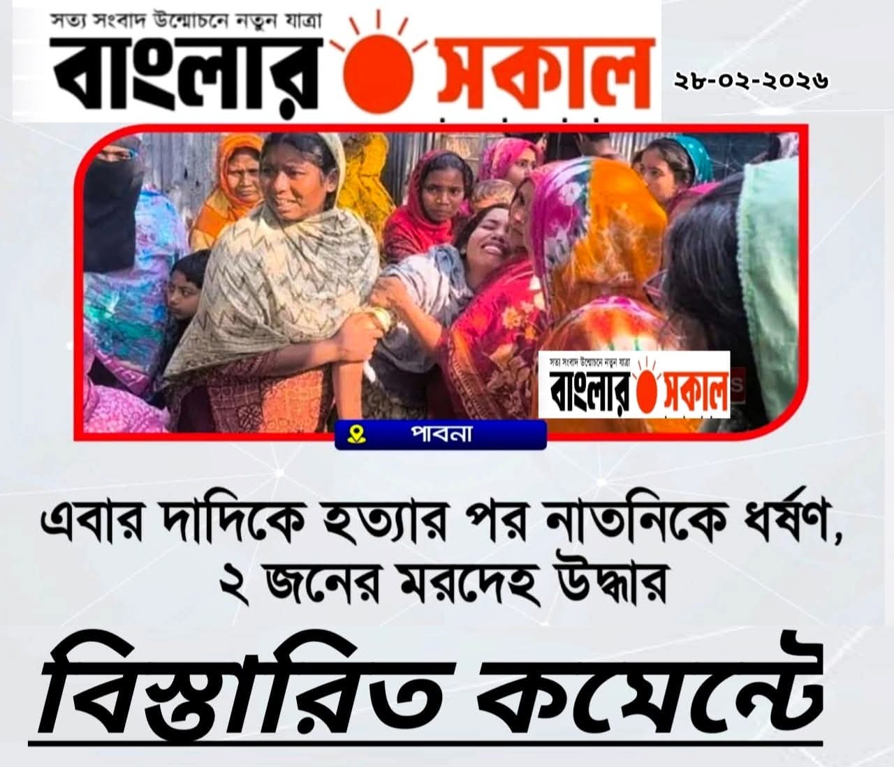 নিজস্ব প্রতিবেদক: শনিবার সকালে উপজেলার দাশুড়িয়া ইউনিয়নের ভবানিপুর উত্তরপাড়া গ্রাম থেকে তাদের মরদেহ উদ্ধার করে পুলিশ। নিহতরা হলেন, ভবানিপুর উত্তরপাড়ার বাসিন্দা জয়নাল খা’র মা সুফিয়া খাতুন (৬৫) এবং তার মেয়ে জামিলা আক্তার (১৫)।পুলিশ ও স্থানীয়দের ধারণা, নাতনিকে অপহরণে বাধা দেওয়ায় দাদিকে কুপিয়ে হত্যা এবং পরে নাতনিকে ধর্ষণের পর শ্বাসরোধ করে হত্যা করা হয়েছে।