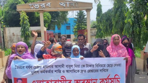 ভৈরবে পুলিশের হাত থেকে পালিয়েছে আসামি, প্রতিবাদের থানার গেইটে ভুক্তভোগীর বিক্ষোভ