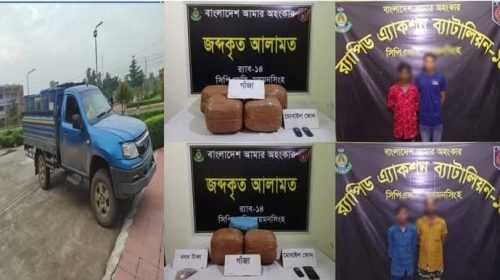 ভালুকায় সেনা-পুলিশের যৌথ অভিযানে ৫ কেজি গাঁজাসহ আটক ২